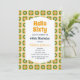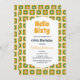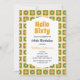 Flor de margarita retro verde y amarillo en caja de cuadros patrón Invitación de cumpleaños.