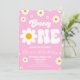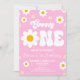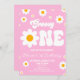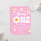 Esta es una invitación de fiesta de cumpleaños número 1 de Pink Retro Daisy Flower Groovy.