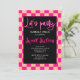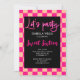 Invitación Retro de melocotón rosado caliente a cuadros Lets