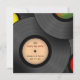 Anuncio de boda personalizable para guardar la fecha con tema musical con ilustración de discos de vinilo retro.