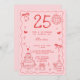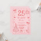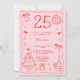 Invitación Retro español Quirky Rosa Rojo 25 cumpleaños