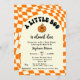 Retro Fun Wavy Checkered A Little Boo Is Almost Due Halloween Baby Shower Invitation - A fun and unique fall baby shower theme with pumpkin happy face, retro orange and cream checkerboard pattern and bubble font. Simple and cute, this editable baby shower invitation template can be customized with your own event details. Available in digital format, easily send via email, social media or text.