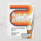 Esta divertida invitación de golf Hit & Giggle con estilo retro se puede utilizar para un evento en un club de campo o para una invitación de cumpleaños. El ambiente retro en azul marino y naranja combinado con el divertido juego de palabras seguramente establecerá el tono para un evento agradable.