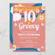 Invitación Retro Groovy décimo cumpleaños