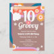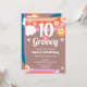 El lindo jovencito retro 10 es una curiosa invitación de cumpleaños. El arcoiris retro popular, estrellas, flores y tipos de letra de los años 60. Disponible como descarga digital imprimible. Excelente para cualquier temporada. Colores pastel rosa retro.