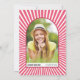 Clase de 2025 Retro groovy magenta y rayos de sol rosados 70 inspirados en la invitación de la fiesta de graduación. ¡Prepárate para cultivar en la fiesta de graduación de la Clase 2025! Se trata de una invitación a los retro de los años 70, con su vibrante diseño de magenta y de rayas rojas rosas. La fachada de la invitación tiene una forma de arco en una animada combinación de magenta y color blanco, con un funky patrón de rayos solares en rosa que añade un toque de nostalgia. Para completar la apariencia de retroceso, la frase 'Fiesta de Grad' se escribe en un tipo de letra retro genial. Voltea la invitación, y encontrarás una estética vintage que cobra vida con una foto del graduado colocada en la misma forma de arco. ¡Es una mezcla perfecta de encanto de la vieja escuela y celebración moderna!