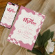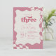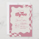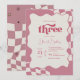 Invitación Retro Groovy Pink Checkered Three 3rd Birthday Inv
