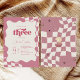 3rd birthday invitation, three groovy, retro 3rd birthday, pink checkered, girl third birthday, groovy birthday invitation, 70s birthday theme, wavy border, pink and cream, checkered pattern, modern retro birthday, young wild and three, aesthetic birthday invite, third birthday party, bohemian birthday, whimsical invitation, three years old, pink birthday, groovy girl, checkered stationery