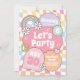 Invitación Retro Groovy Rainbow Checker Girl Birthday