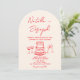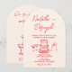 Invitación Retro Hand Drawn Red Cake Unique Arched Wedding