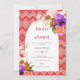 Invitación Retro Lines Floral Magenta Fuchsia Brillante Ducha