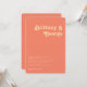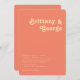 Retro moderno | La invitación de boda en esquina redondeada de coral es perfecta para su sencillo boda de verano boho tropical de época y colorido. Su original fuente bohemia de mediados de siglo le da a este diseño un minimalista y clásico ambiente hippie. Si buscas un diseño con colores brillantes y llamativos para tu boda playera de los años 70, entonces este producto, y su colección de bodas coordinadores, son precisamente lo que buscas. No dudes en cambiar el color y añadir tu propia obra de arte, gráficos o fotos. Si tiene alguna pregunta sobre el diseño de este producto, por favor, no dude en ponerse en contacto con nosotros.