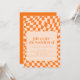 Invitación Retro Naranja Resumen Boda de tablero de ajedrez