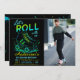 Retro Neon Roller Skate Birthday Photo Invitation.