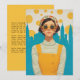 Este vibrante ilustracion de estilo retro capta a una mujer de moda con gafas de sol amarillas y un conjunto vintage frente a un estilizado paisaje de la ciudad de Nueva York con jugados puntos de polka. Un diseño perfecto para los fanáticos de la Nueva York, la moda vintage y el arte gráfico audaz, ideal para posters, totes, ropa y más.