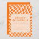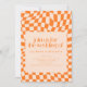 Invitación Retro Orange Abstract Check Wedding QR Code RSVP
