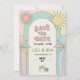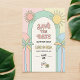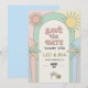 Get your guests ready for a vibrant celebration with this Retro Palm Springs Save the Date. Inspired by 70s groovy aesthetics and Mid-Century Modern style, this design features a playful double-arch layout with hand-drawn palm trees, sunbursts, and retro typography. The soft pastel palette of mint, peach, and sun-drenched yellow is perfect for a desert wedding, a tropical summer bash, or a chic poolside ceremony.