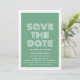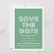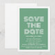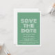 Anuncio Retro para Guardar la Fecha en verde y blanco con un diseño de tipografía moderno y divertido. Esta invitación para guardar la fecha es trendy y elegante, y se puede personalizar fácilmente con los detalles de tu boda. Para más opciones de personalización, haz clic en el botón Personalizar.