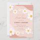 Invitación Retro Pink Boho Daisy Floral Script Ducha de novia