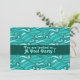 Invitación a una fiesta para un fiesta de piscina con un diseño retro de moda y fresco de las olas de agua de doodle de arte en azul y agua. El texto de esta invitación es totalmente personalizable para incluir sus propios datos personales.