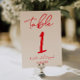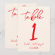 Invitación Retro Red Hand Written Wedding Table Number