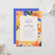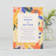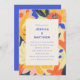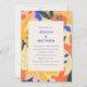 Retro Artsy Resumen Invitación a la Boda Botánica en Azul, Naranja, Rosa y Amarillo con detalles en línea de RSVP