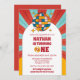 Invitación Retro Rojo Primer Niño Cumpleaños Groovy Fiesta Vi