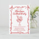 Get your guests in the holiday spirit with this fun and festive Christmas cocktail party invitation featuring a retro-style Santa Claus relaxing with a martini glass. The classic red border of playful ribbon lines adds a cheerful touch to this vintage-inspired design.