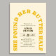Toast to the bride who finally found her perfect match with a Bridal Shower Invitation as warm, golden, and irresistible as the occasion itself. At the heart of the design, the words She Found Her Butter Half curve delightfully in a charming retro serif font, arranged in a graceful arch that balances wit with warmth, a playful declaration that feels as sweet as it sounds. The rich, sunny yellow palette radiates joy from every corner, wrapping the entire design in the kind of golden glow that only the best celebrations carry.