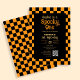 Invitación Retro Spooky One Checkered Orange 1st Birthday
