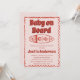 Celebrate your little one in style with this retro-inspired "Baby on Board" baby shower invitation. Featuring bold vintage typography and a minimalist surfboard illustration in warm terracotta tones, this design blends modern boho charm with a subtle southwestern aesthetic.