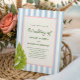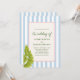 Celebrate your special day with a playful retro tropical vibe! This wedding invitation features a soft blue striped background, palm fronds, and a rope-bordered frame with green text. Perfect for couples who love whimsical elegance with a touch of island flair.