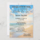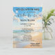 Una invitación retro a la ducha de novias en la playa que incluye un cuadro acuático de una playa en un hermoso día. En la parte posterior hay una plantilla de código QR (opcional) fácil de personalizar. Hermoso para una boda de destino, un boda náutico o una boda en la playa.