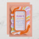 Set a cheerful and groovy tone for your celebration with this eye-catching, retro-inspired invitation. The design centers around a bright tangerine orange 3D border that resembles a soft, inflated gummy tube or marshmallow, enclosing a clean white space for your event details. Surrounding this central focal point is a fun, wavy die-cut style background featuring swirling psychedelic bands of sherbet colors—including soft lavender, mint, lemon, and peach—finished with a sugary, textured look. The overall aesthetic mimics the playful feel of claymation or soft sculpture art, making it stand out from traditional flat stationery. This vibrant and whimsical design is a flawless choice for a "groovy one" first birthday, a retro roller skating party, or a summery pool bash. You might also select this colorful aesthetic for a kid's art class invite, a sweet sixteen celebration, or a fun ice cream social event.