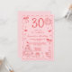 Invitación Retro Whimsical Quirky Rosa Rojo 30 cumpleaños