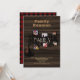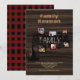 Esta es una invitación de fiesta de reunión familiar de colaje de fotos única. Cuenta con un diseño rústico de un árbol con campos de plantilla para texto de invitación y tus propias fotos familiares. Plaid de búfalo y tema de madera rústica.