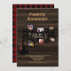 Esta es una invitación de fiesta de reunión familiar de colaje de fotos única. Cuenta con un diseño rústico de un árbol con campos de plantilla para texto de invitación y sus propias fotos familiares. Tema de cuadros de búfalo y madera rústica.