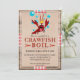 El rey de los cangrejos de río es perfecto para su próxima cangrejos, camarones, langosta o hervido de mariscos en general. Está listo para divertirse con un fondo rústico de madera y arpillera, y texto que se puede personalizar para su evento. Prepare el maíz cajún y las papas, relájese y disfrute de la fiesta con estilo con su familia y amigos.