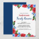 Invitaciones para la fiesta de reunión familiar Flores Patrióticas. Invite a amigos y familiares a su celebración familiar patriótica con estas invitaciones modernas de flores rojas, blancas y azules patrióticas. Personalice esta invitación floral patriótica con su evento, nombre y detalles de la fiesta.