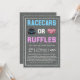 ¡Revisa tu emoción con nuestra invitación a revelar género de autos de carrera o escarabajos! Perfecto para su revelación deportiva, estas invitaciones son una manera emocionante de anunciar sus grandes noticias. ¿Será azul o rosa el equipo? Con diseños dinámicos con autos deportivos y faldas pleat, estas invitaciones son un éxito para cualquier evento de revelación de género racial. No se pierda la forma más moderna de celebrar - quemaduras o arcos, haga su momento especial inolvidable. ¡Pida ahora y deje que comience la carrera!