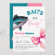 Elegante Lo que el bebé será pescar el cebo con temática o arcos temática género Invitación a revelar presentación de color de agua arco rosado y pez azul verde. Productos coincidentes que se pueden encontrar en la colección.