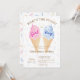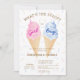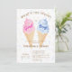 Haga que el fiesta de género de su bebé sea inolvidable con esta moderna invitación de helados de verano. El diseño está decorado con hermosos cono de helado rosa y azul acuarela sobre un fondo de rociado que lo hace a la vez elegante y encantador, mientras que la frase "¿Cuál es la primicia?" agrega un elemento lúdico a la tarjeta. Utilice las herramientas de diseño para personalizar del texto, letra y colores. También disponible como descarga digital.