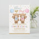 Esta adorable invitación temática de osito de peluche te hará sonreír a los clientes. El suave color rosa pastel, azul y dorado hace que este diseño sea perfecto para una ducha de bebé con un toque de género. Personalice la invitación con sus detalles y si desea reorganizar el estilo y la ubicación del texto, pulse el botón "Haga clic para más personalizares".