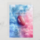 Invitación a revelar sobre el tema del fútbol americano o el deporte de rugby inglés. La plantilla de invitación editable incluye humo azul pastel y rosa que rodea una bola. El texto de la tipografía negra dice Azul o Rosa, ¿qué piensas? Personalice editando la invitación digital o impresa con los detalles del evento.