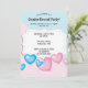 Esta linda invitación editable presenta los detalles del evento contra un fondo de lunares azules y rosados con globos en forma de corazón rosados y azules en la parte inferior. En el reverso, hay un campo editable para información adicional. El texto en ambos lados es editable, así que adelante y cambie los detalles, así como el tamaño y color del estilo de fuente. Esta invitación se puede utilizar para revelar el sexo, baby showers, etc.
