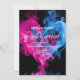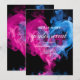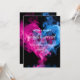 Una plantilla de invitación a la fiesta Baby Gender Reveal con temática de humo. En un fondo negro, el humo azul y rosa vibrante forma un corazón amoroso alrededor del texto blanco. Personalice editando la invitación digital o impresa con los detalles del evento.