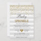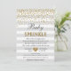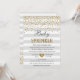 Invitación de baby sprinkle gris claro y dorado ideal para una fiesta de género neutral o una revelación de género. ¡Gran complemento para un tema de género neutral! El color de fondo se puede cambiar. Se pueden encontrar insertos, carteles, juegos y decoraciones coincidentes en nuestra Colección de Confeti Verde Menta y Dorado.