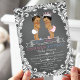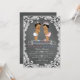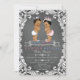 Invitación a la fiesta de revelación de género étnico con adorables bebés príncipe y princesa étnicos con coronas de joyas plateadas en un bonito fondo de pizarra con remolinos. Puede personalizar fácilmente estas lindas invitaciones de revelación de género de príncipe y princesa para su evento simplemente agregando sus detalles en el estilo de fuente que elija.