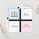 Elegantes invitaciones de revelación del sexo del príncipe y la princesa con corona de oro y tiara de oro para baby shower. Esta linda invitación de revelación del sexo del príncipe y la princesa en rosa y azul se personaliza fácilmente para su evento agregando los detalles del evento, estilo de fuente, tamaño y color de fuente, y redacción.