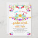 El género colorido revela la invitación con el tema de la fiesta mexicana. Puedes personalizar señor o señorita para leer a un chico o chica, a él o a ella, etc. El diseño floral tiene flores de arte folclórico mexicano sobre un fondo blanco con escritura de brocha y tipografía caprichosa o rosa, azul y naranja. La parte trasera también está decorada con flores a juego. Bonito diseño colorido y perfecto para el Cinco de Mayo, fiesta de jardín o fiesta.